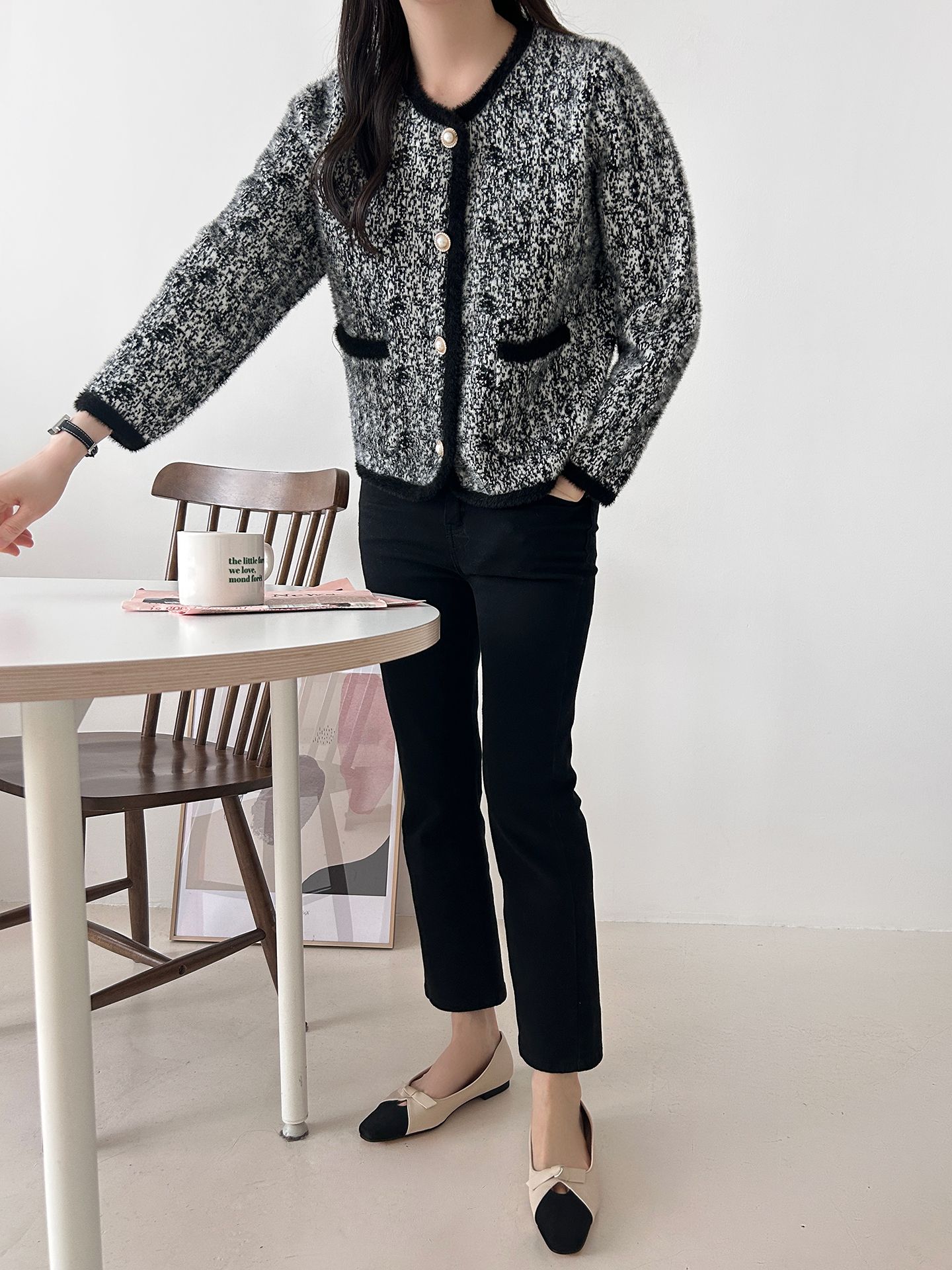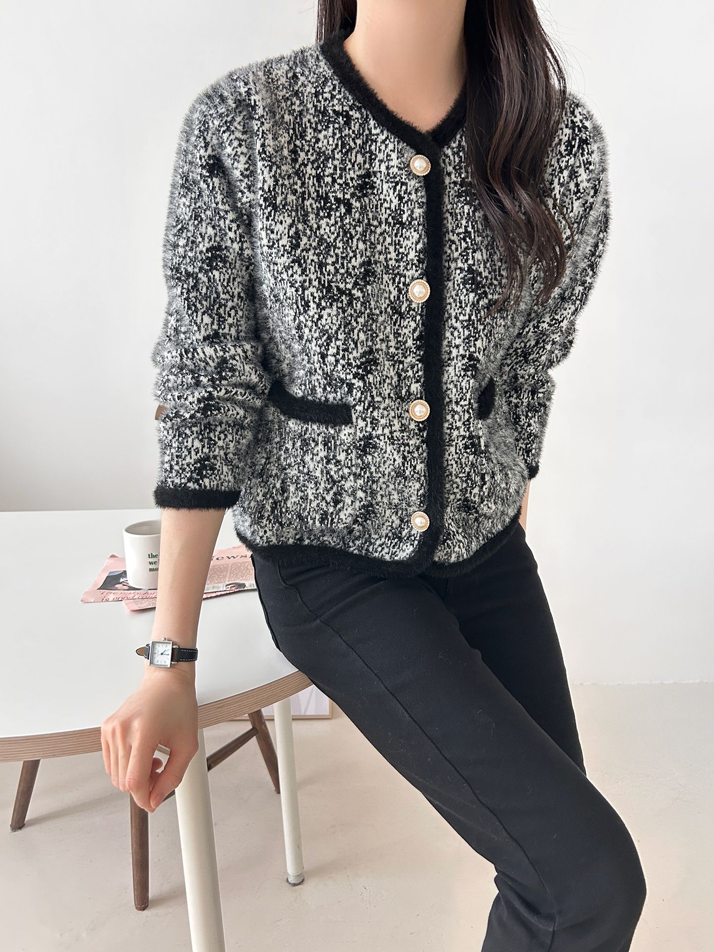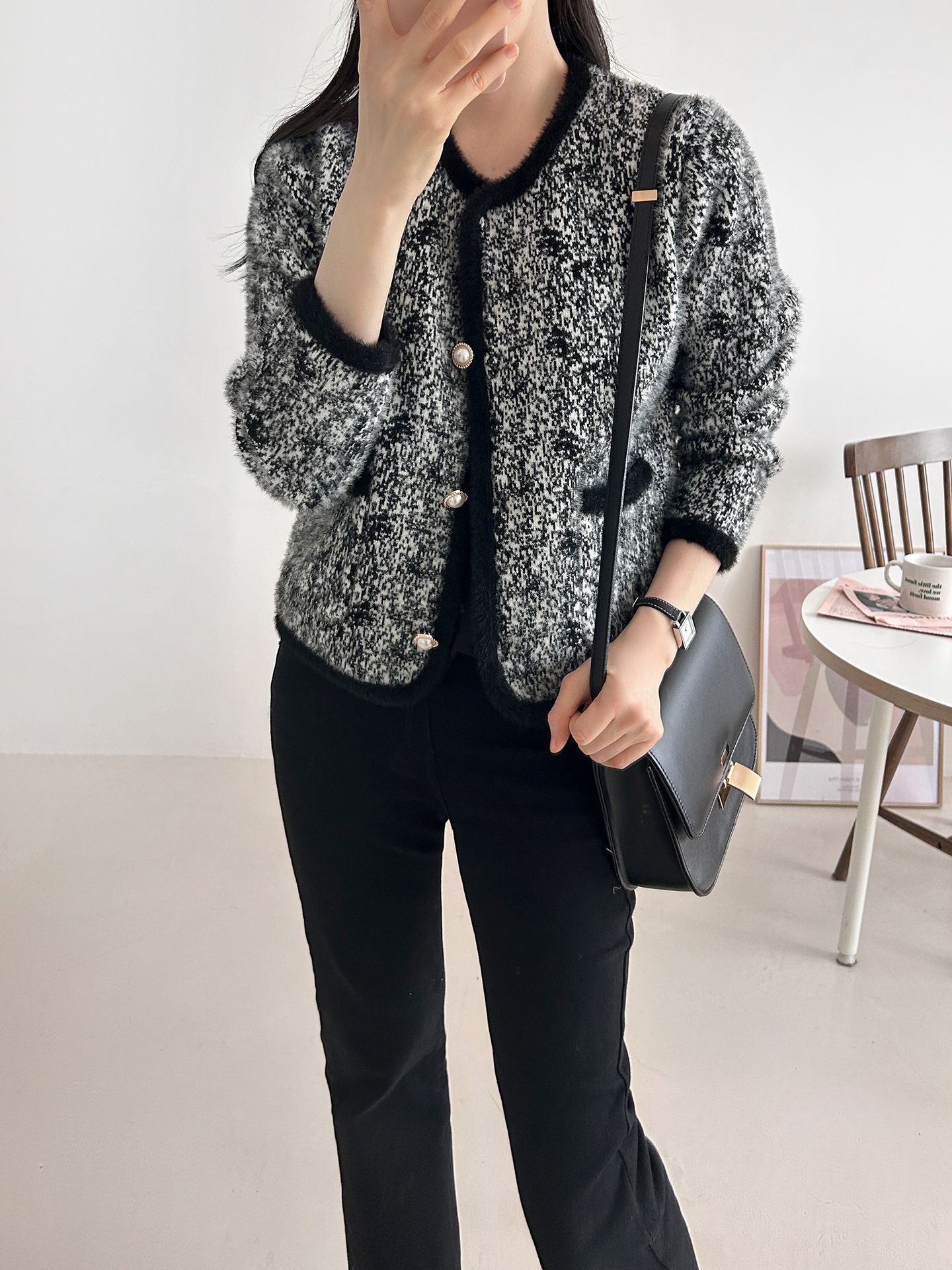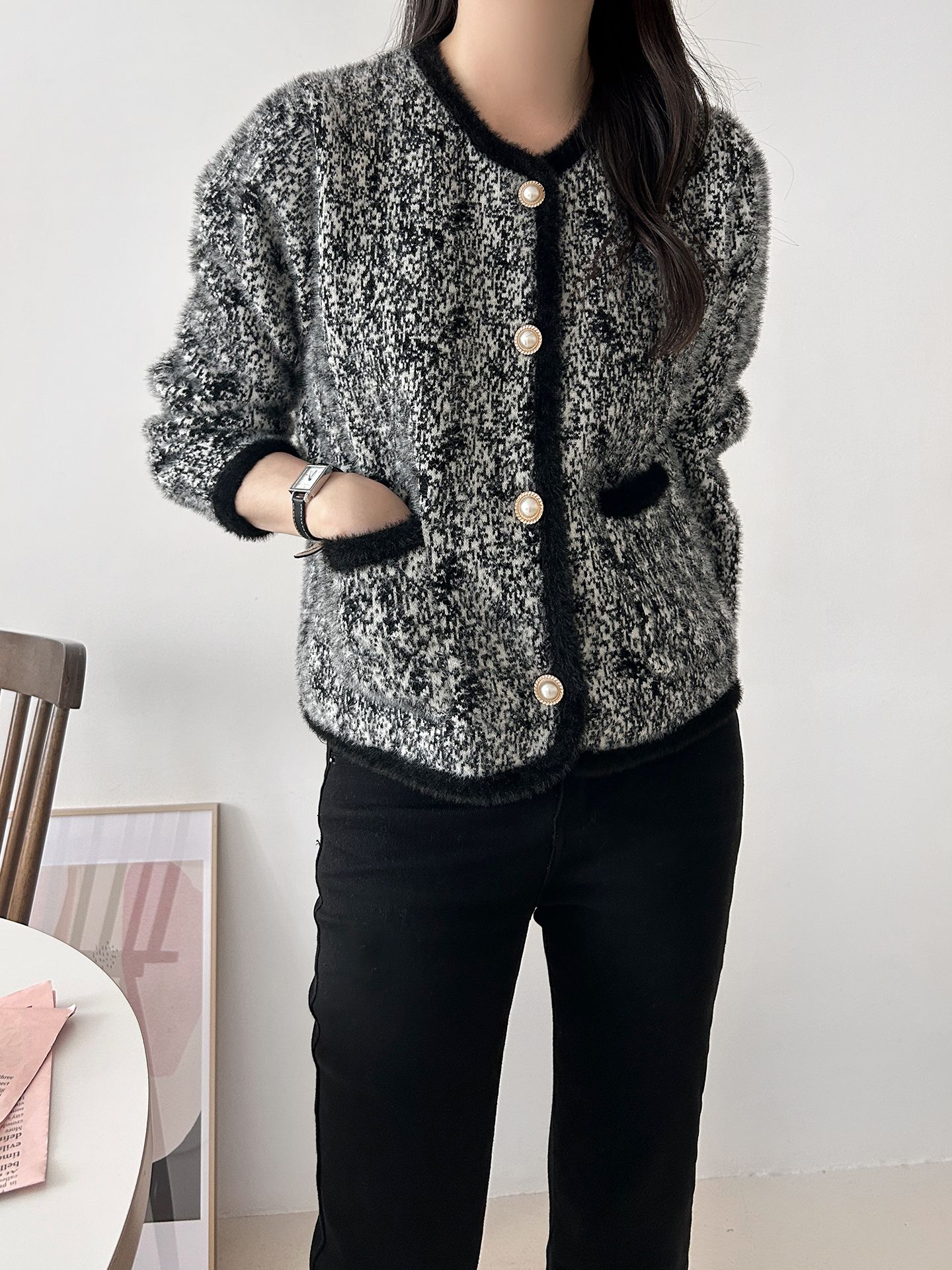 拼色粗花呢開衫