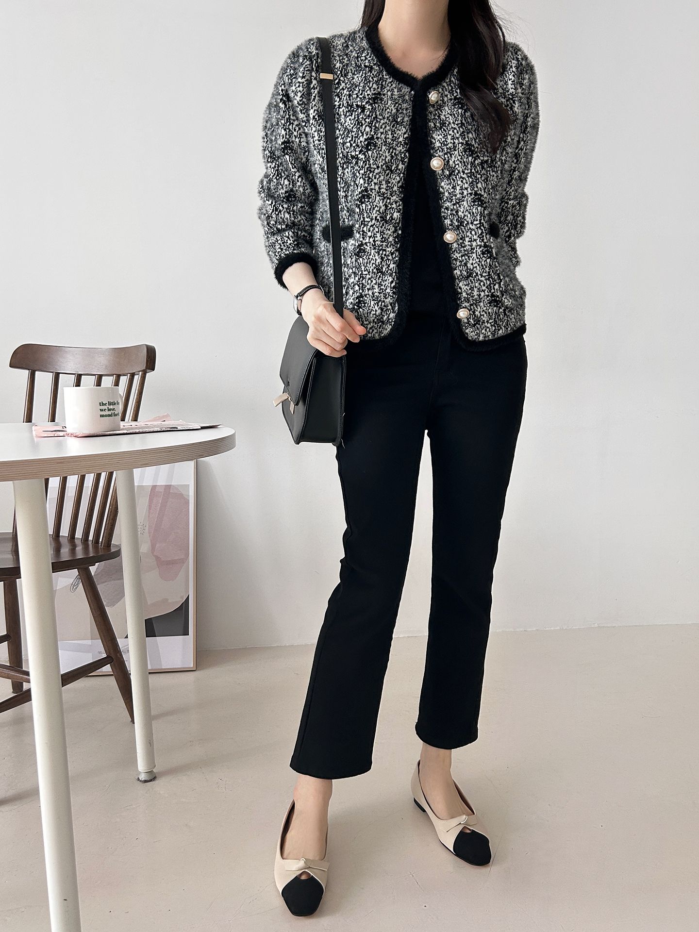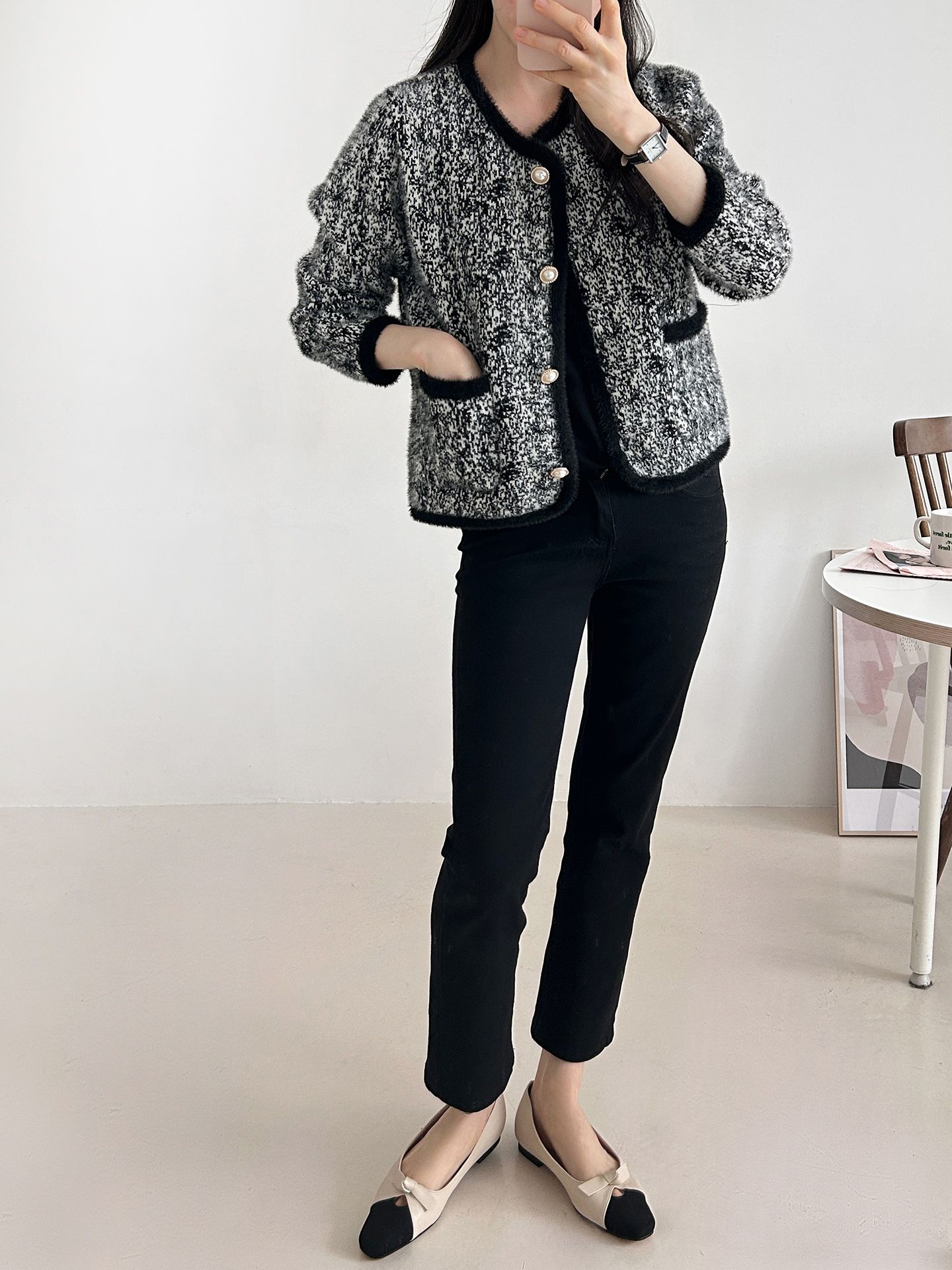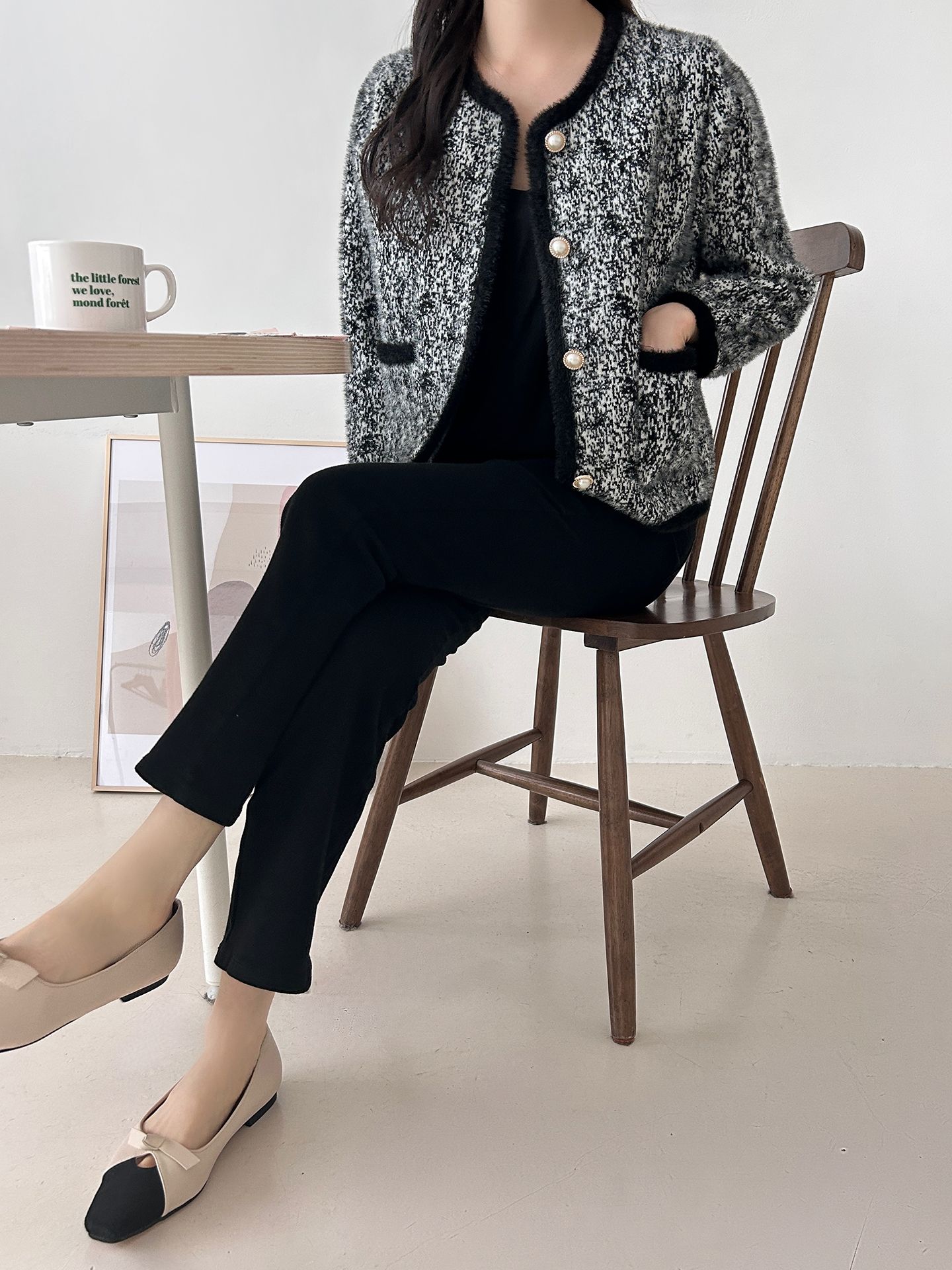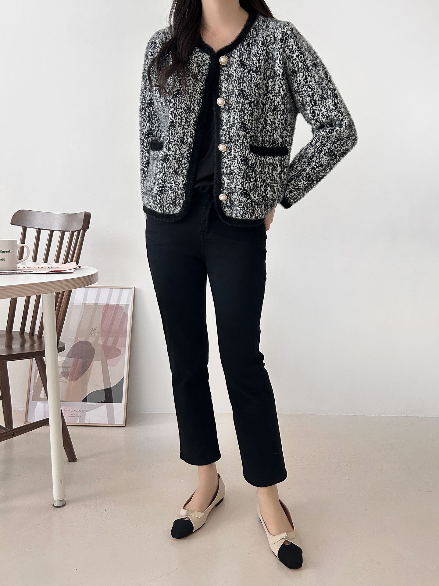 拼色粗花呢開衫