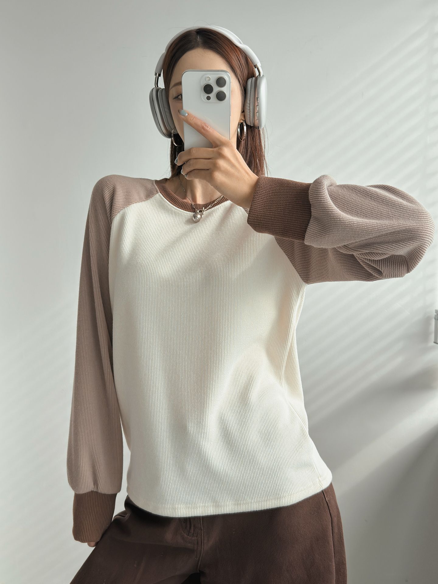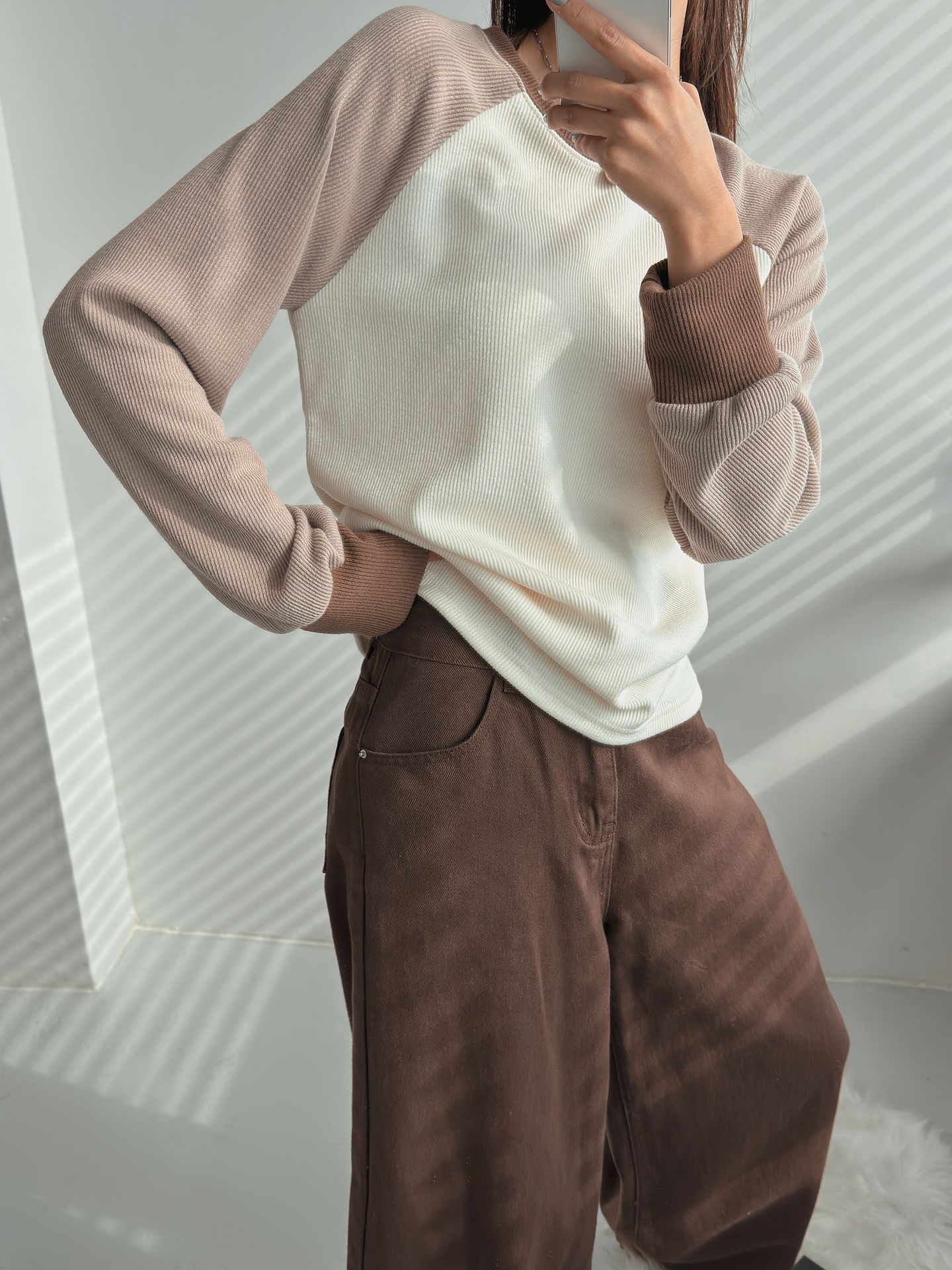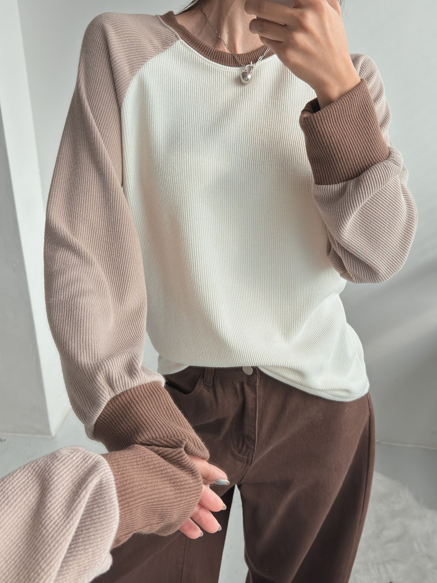 混色插肩袖針織T恤