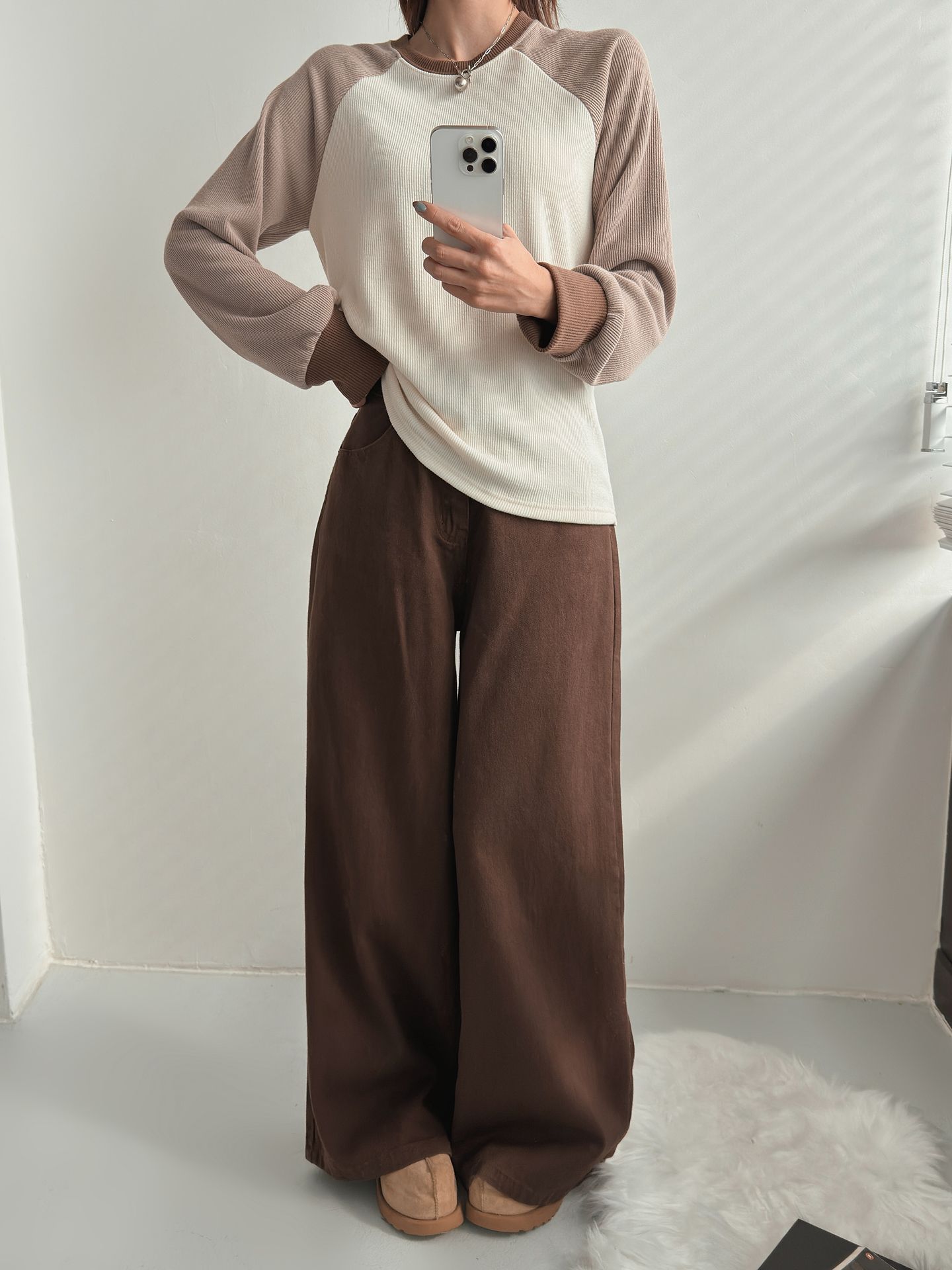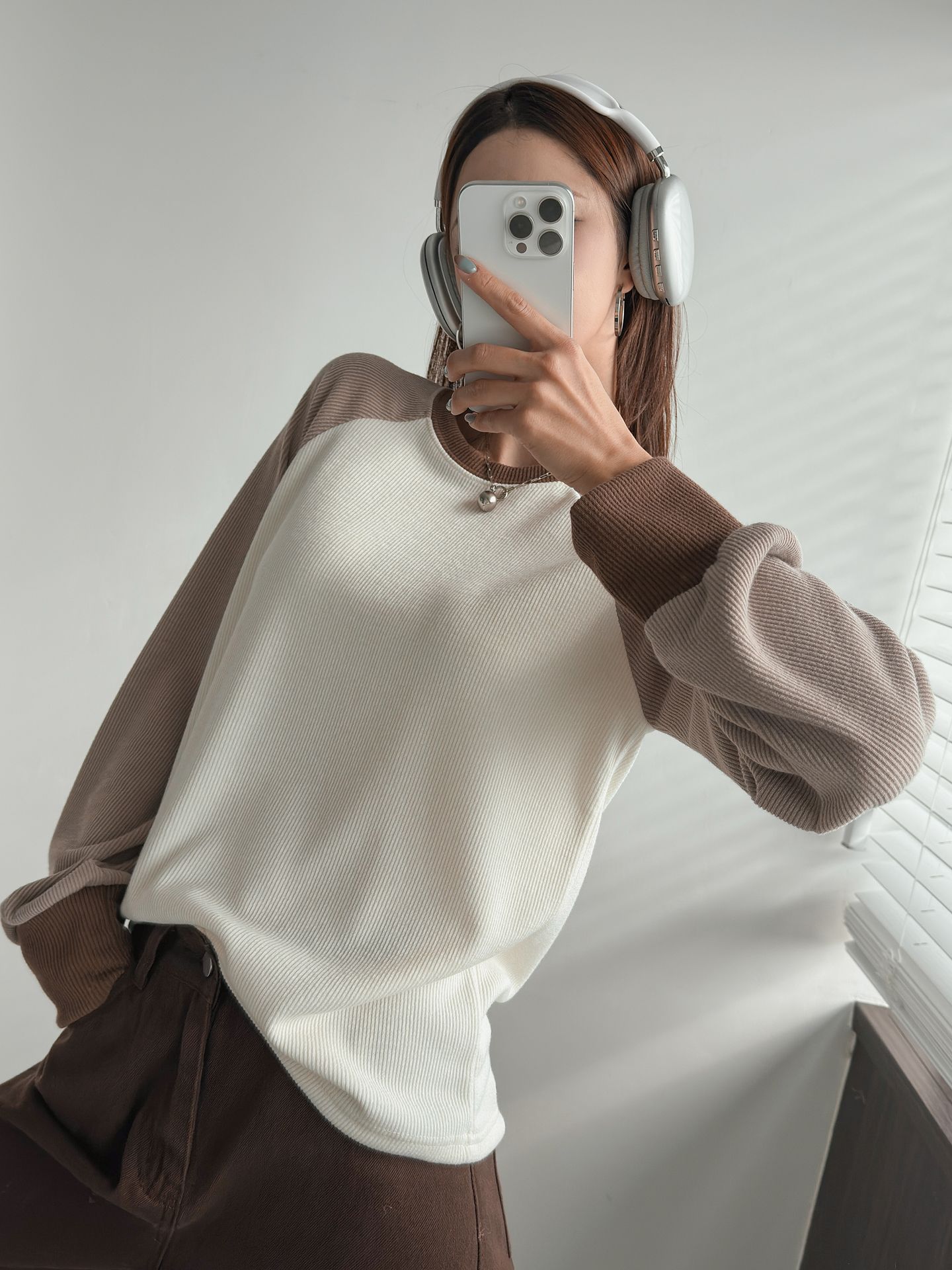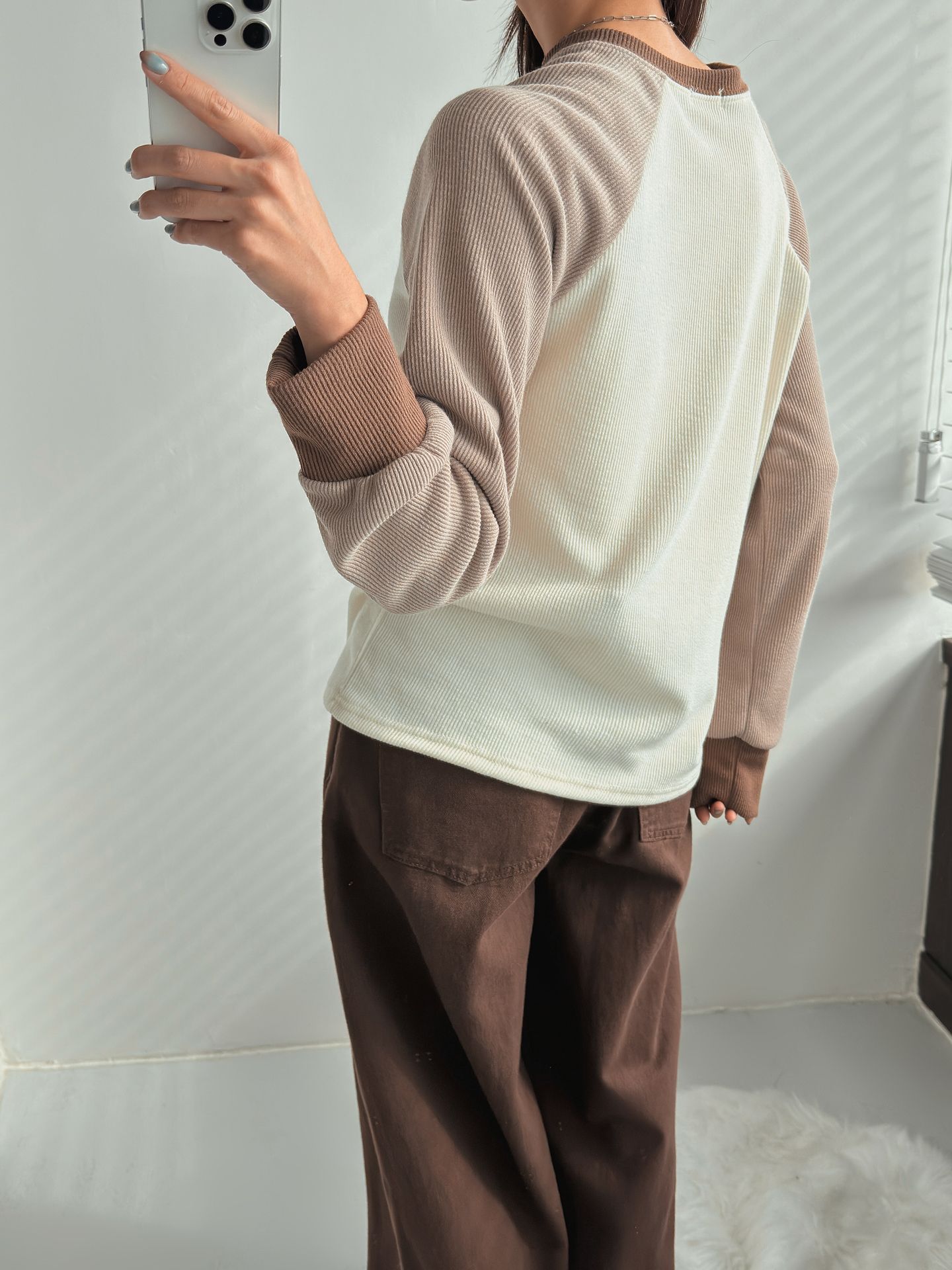 混色插肩袖針織T恤