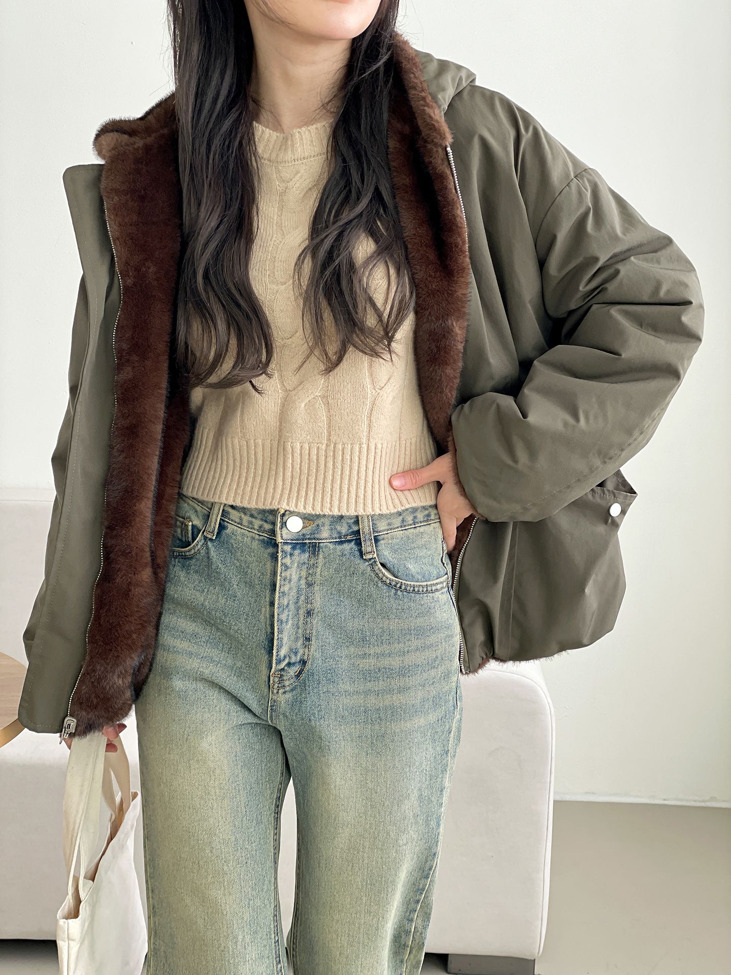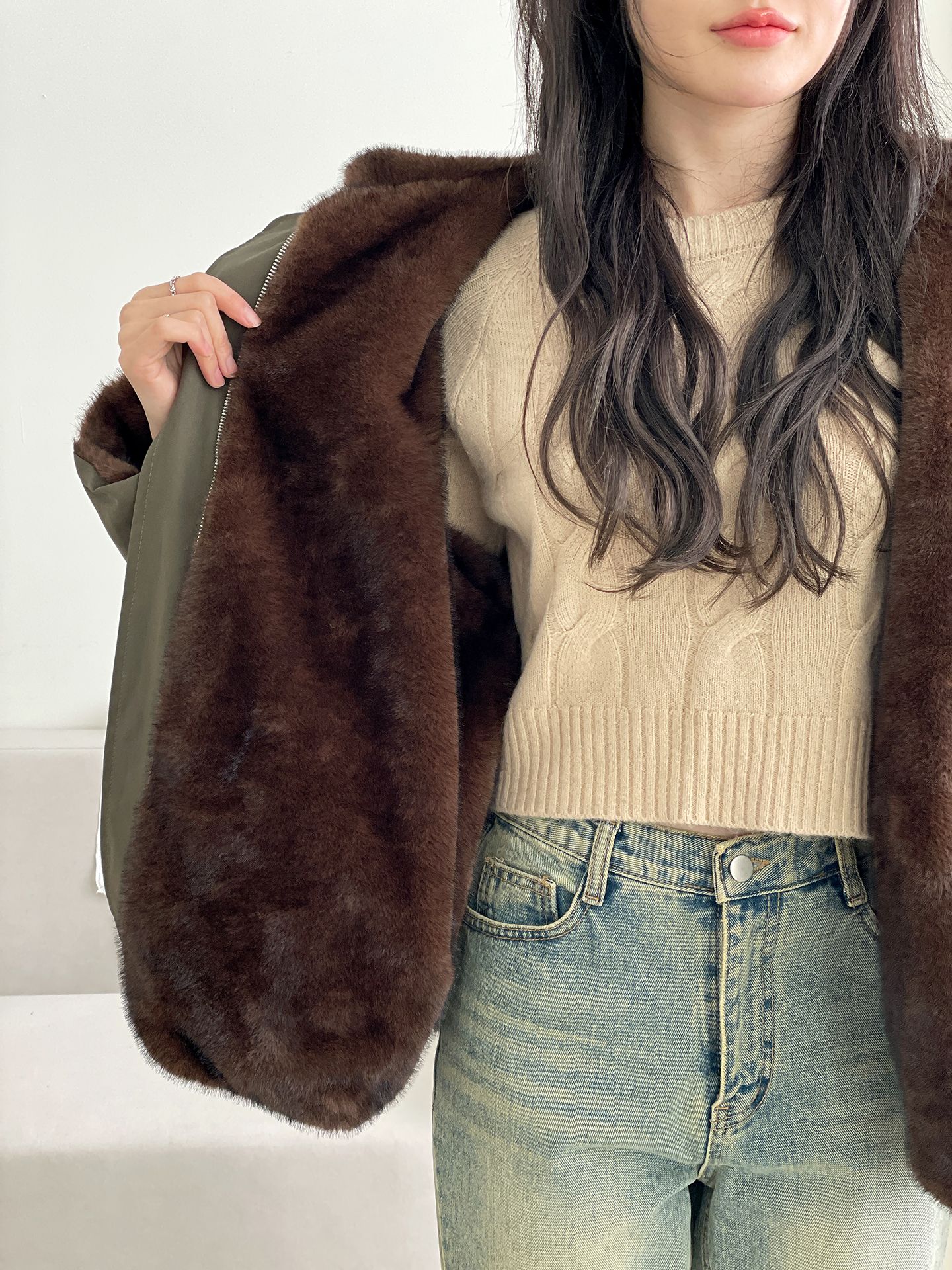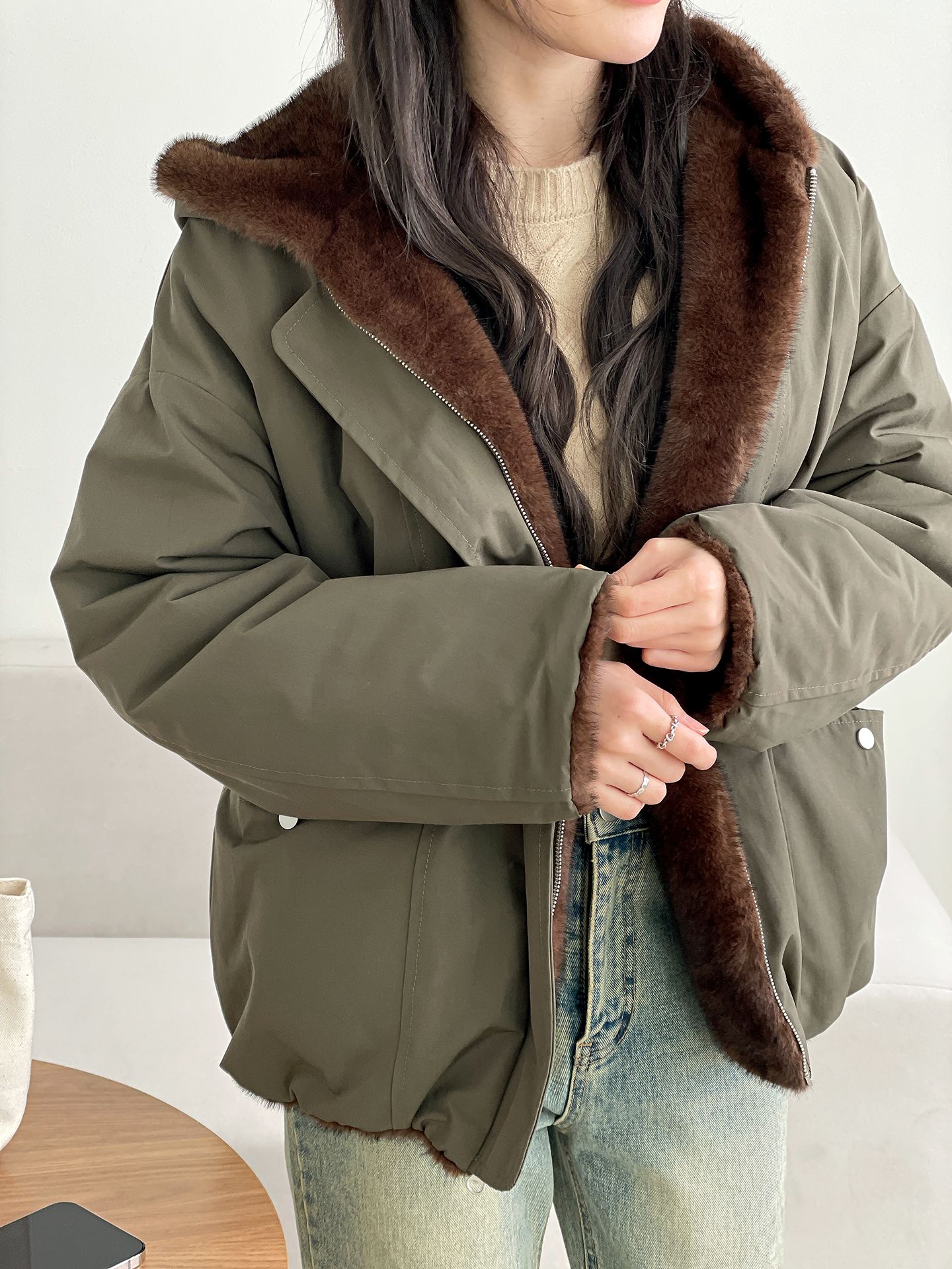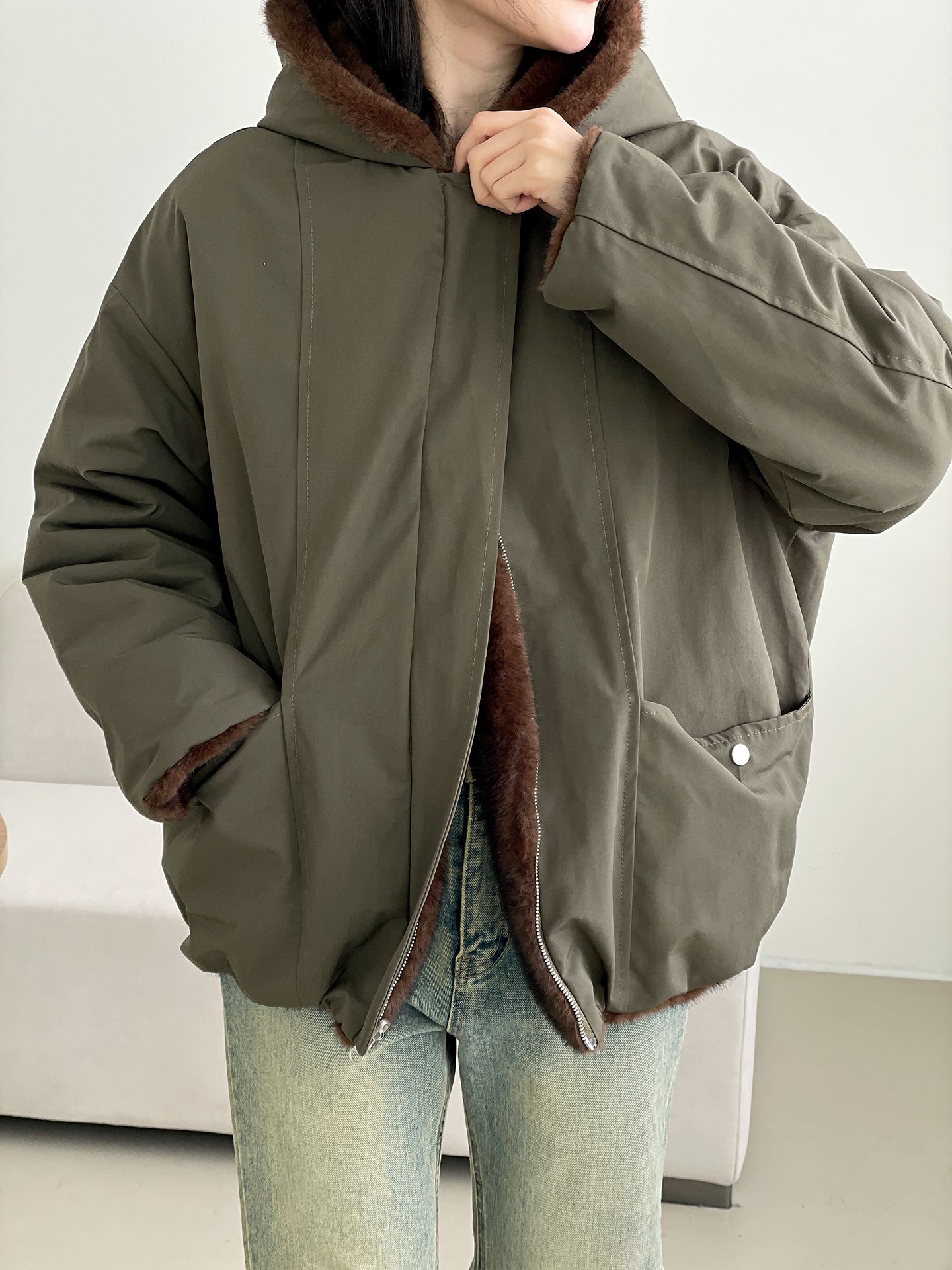 雙面貂皮短款軍旅夾克