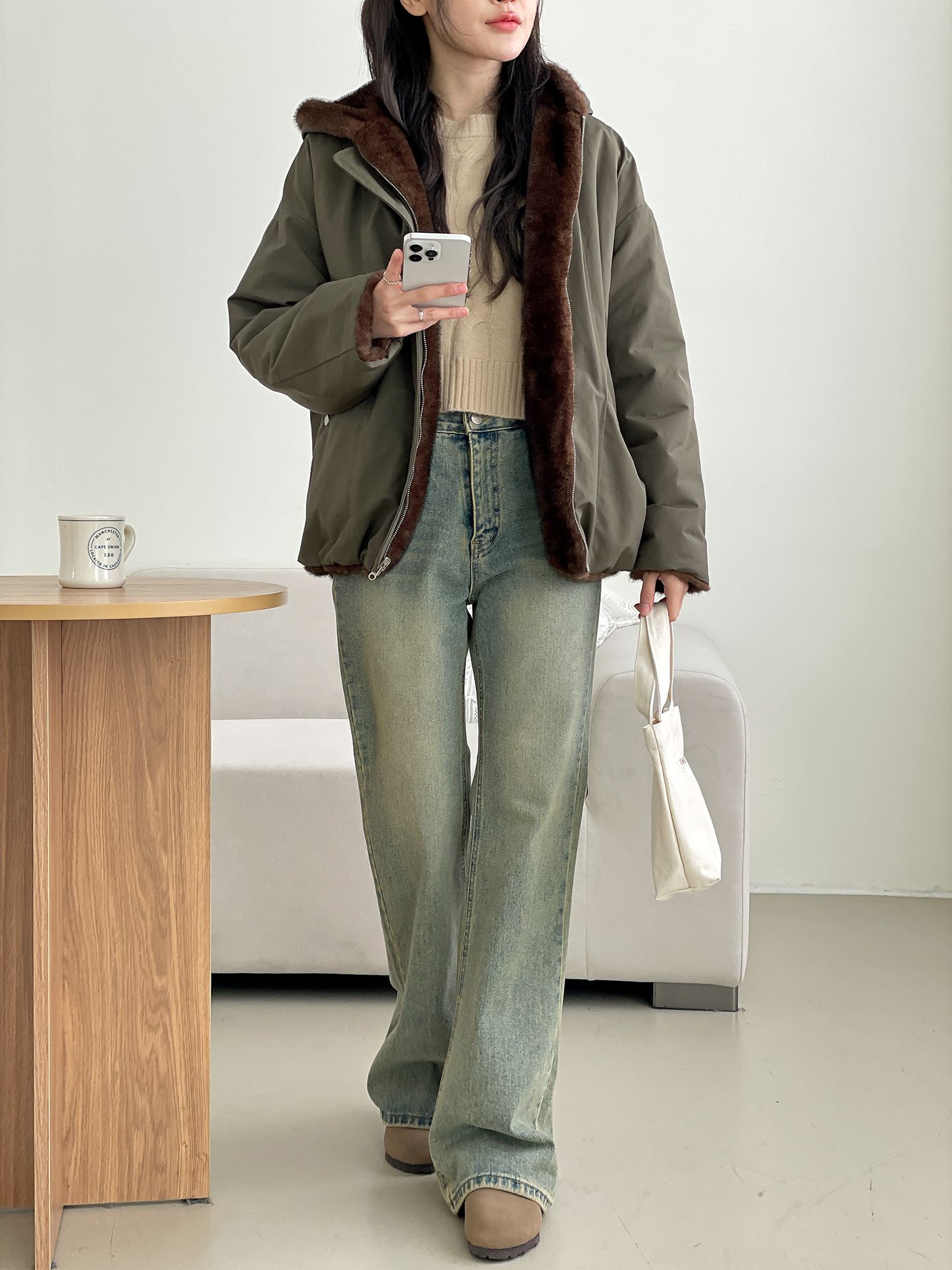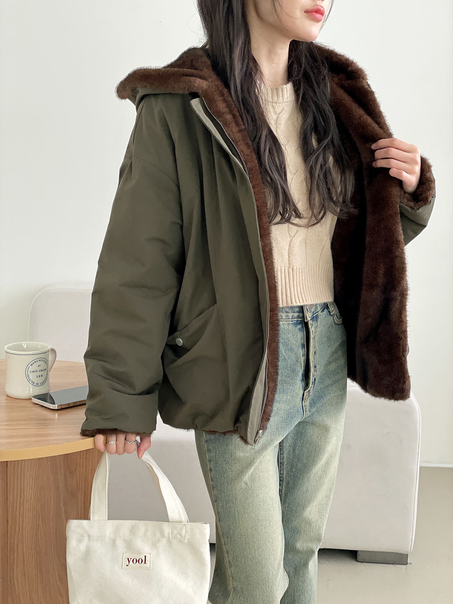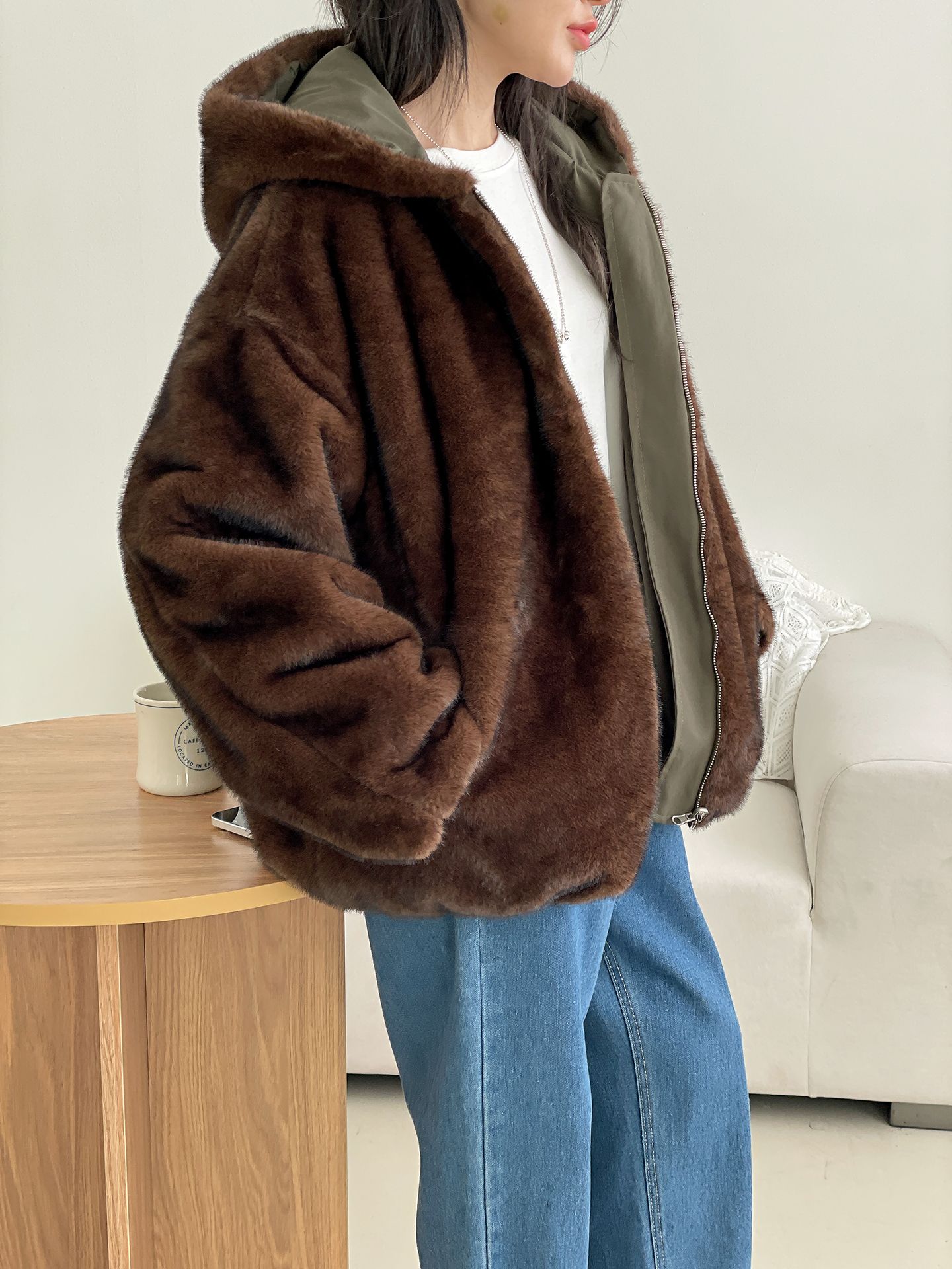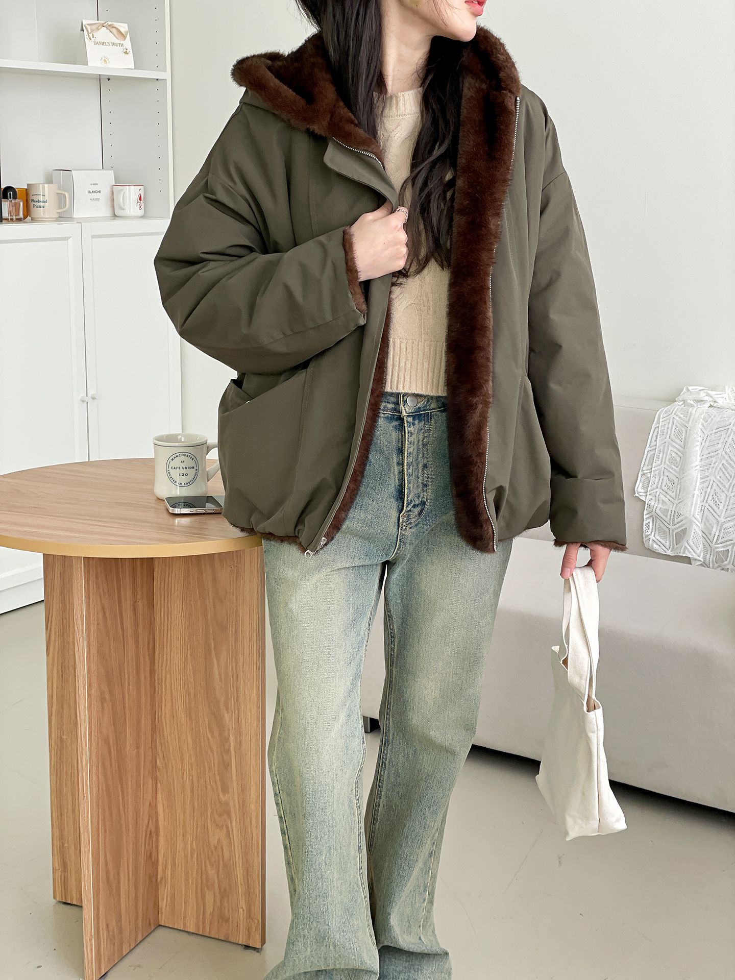雙面貂皮短款軍旅夾克