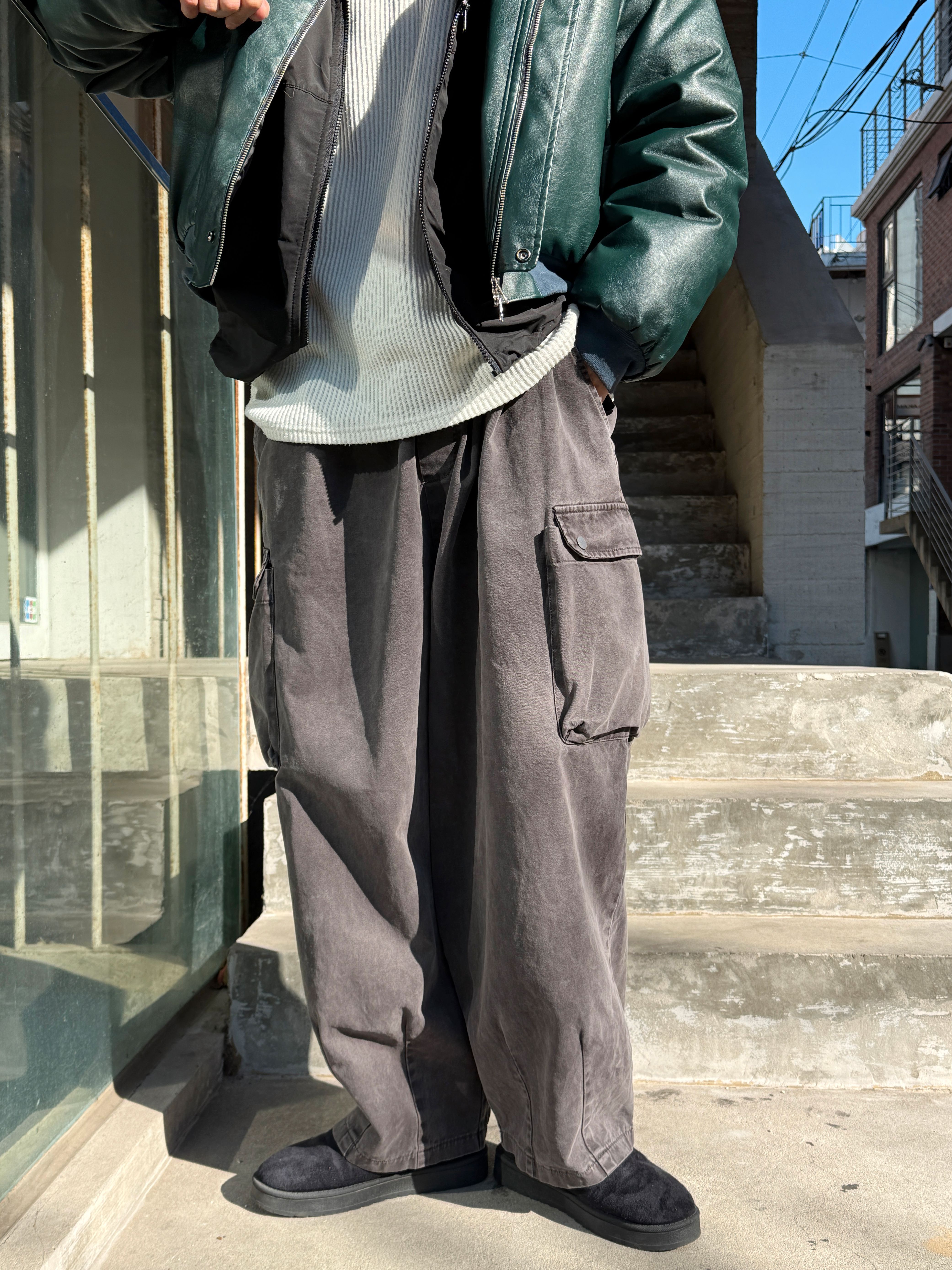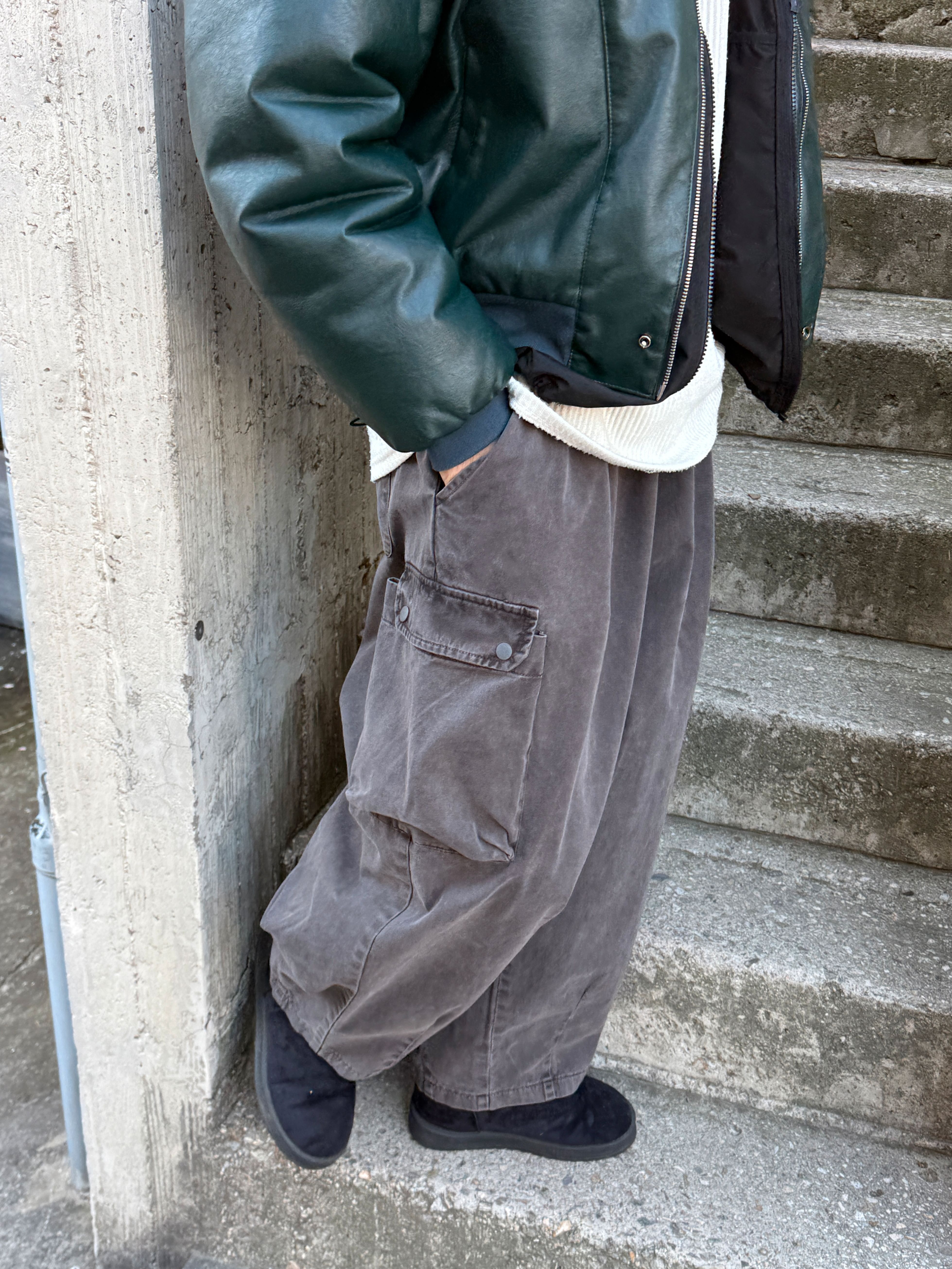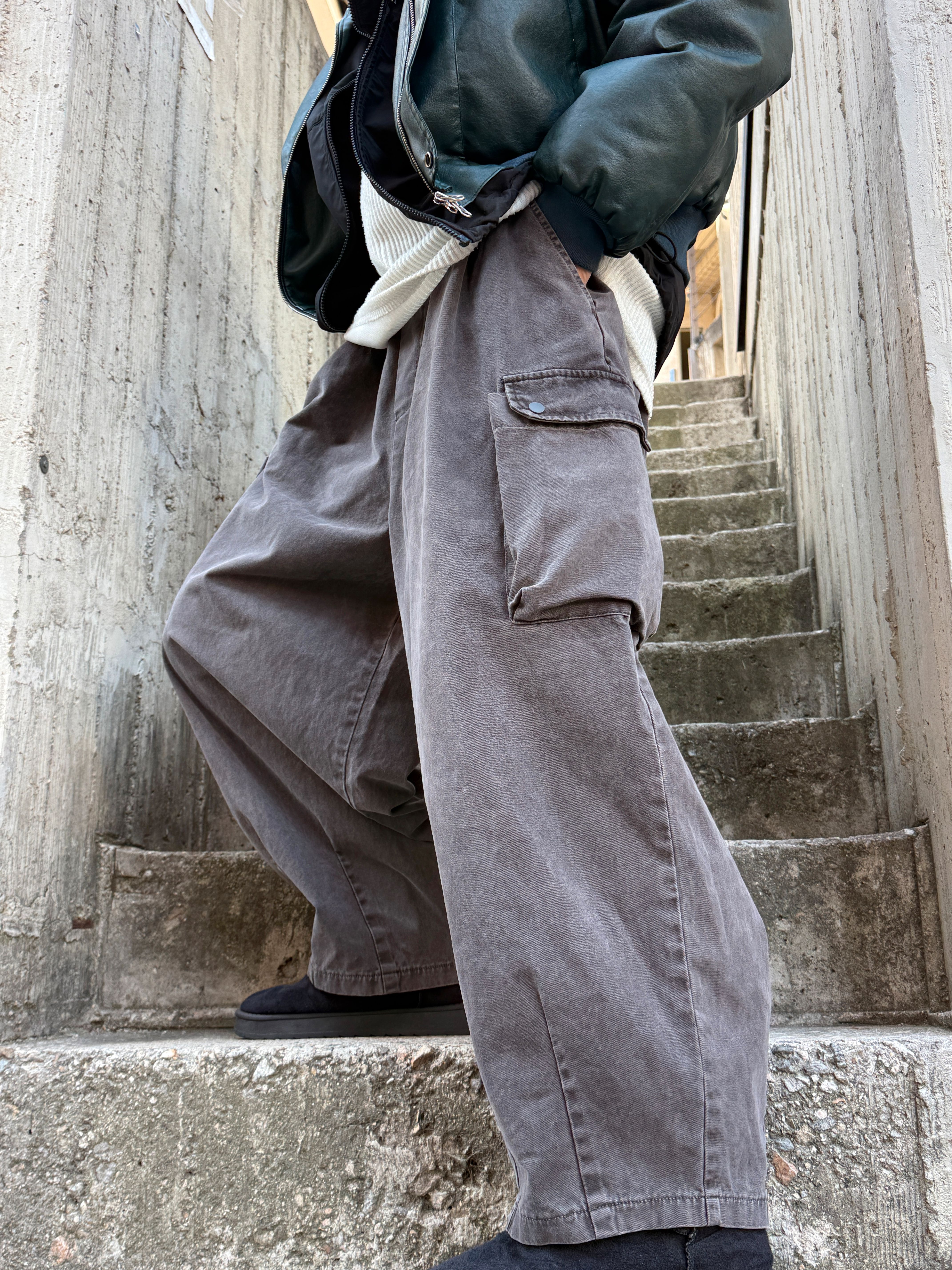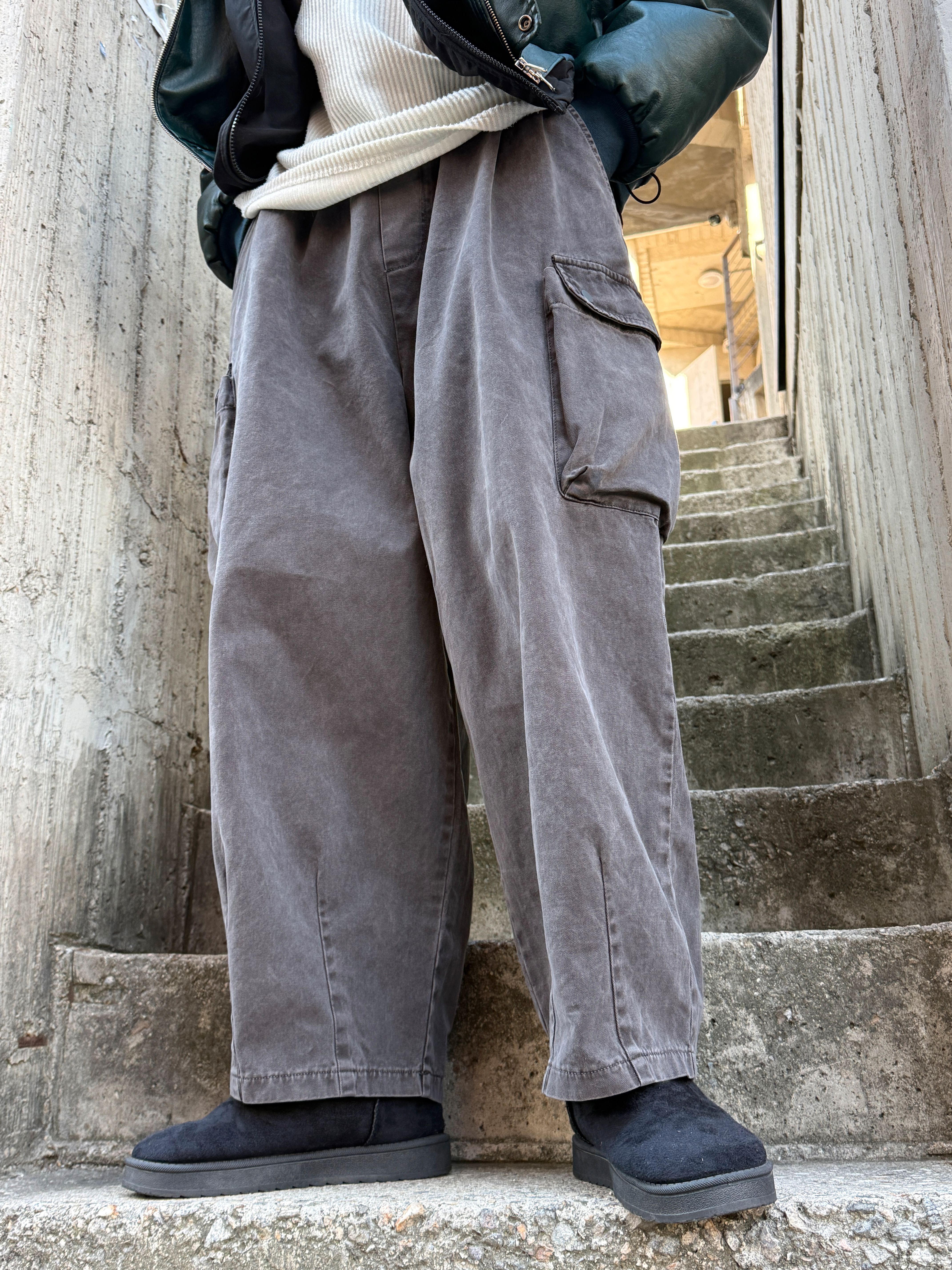 R795 氣球染色工裝鬆緊腰闊腿褲 FW