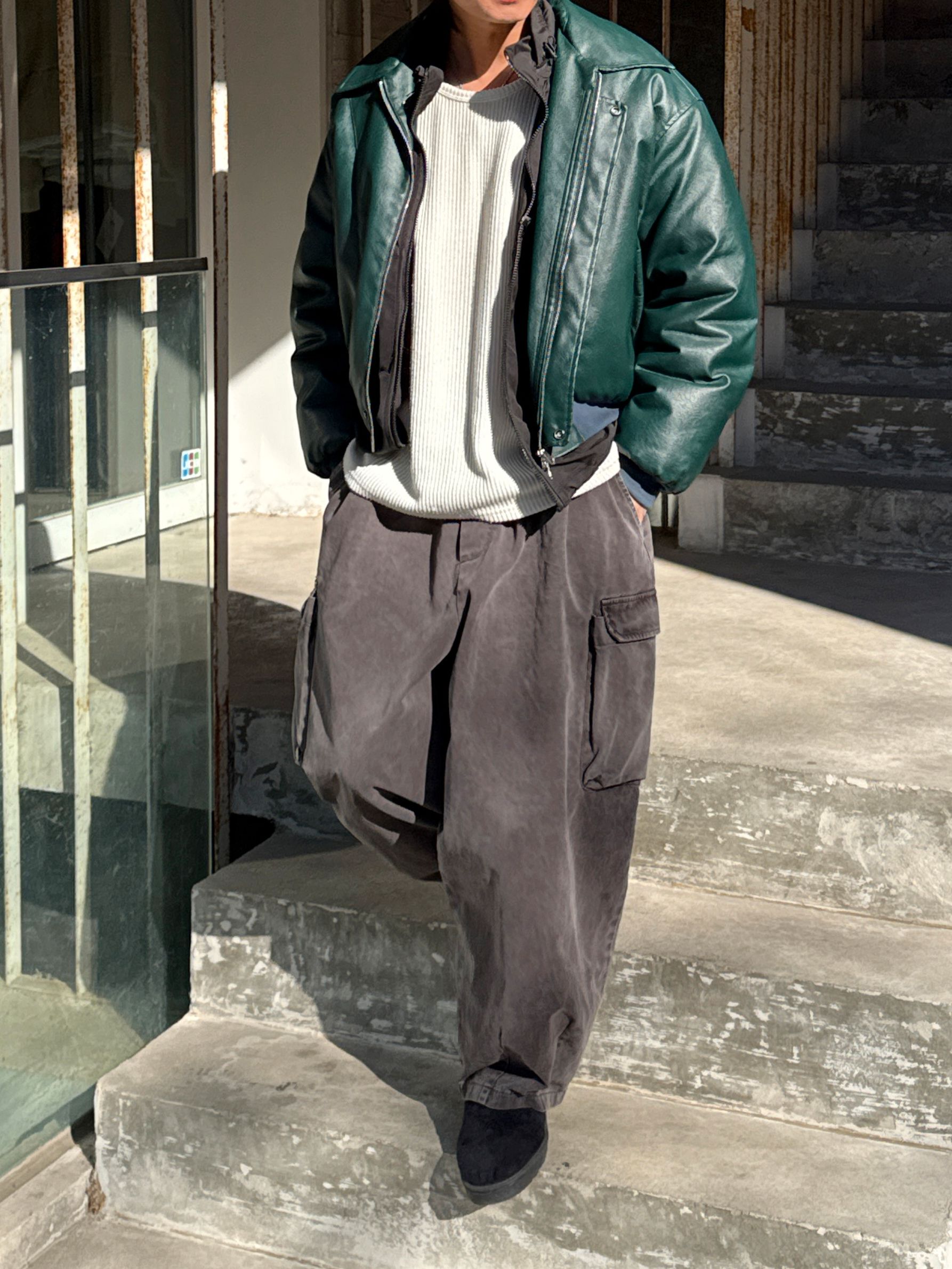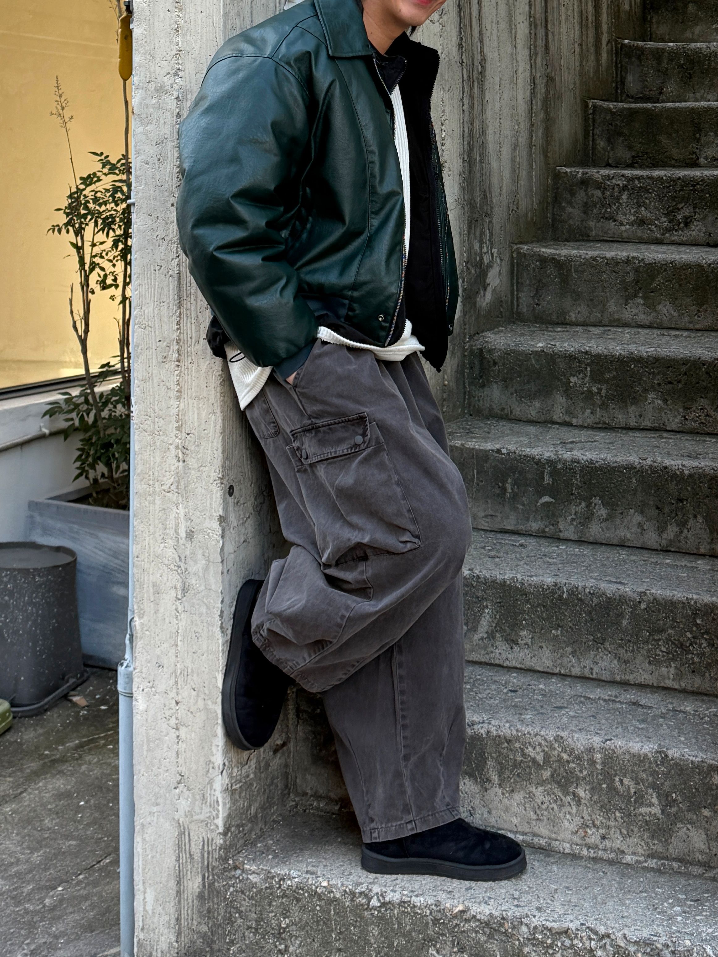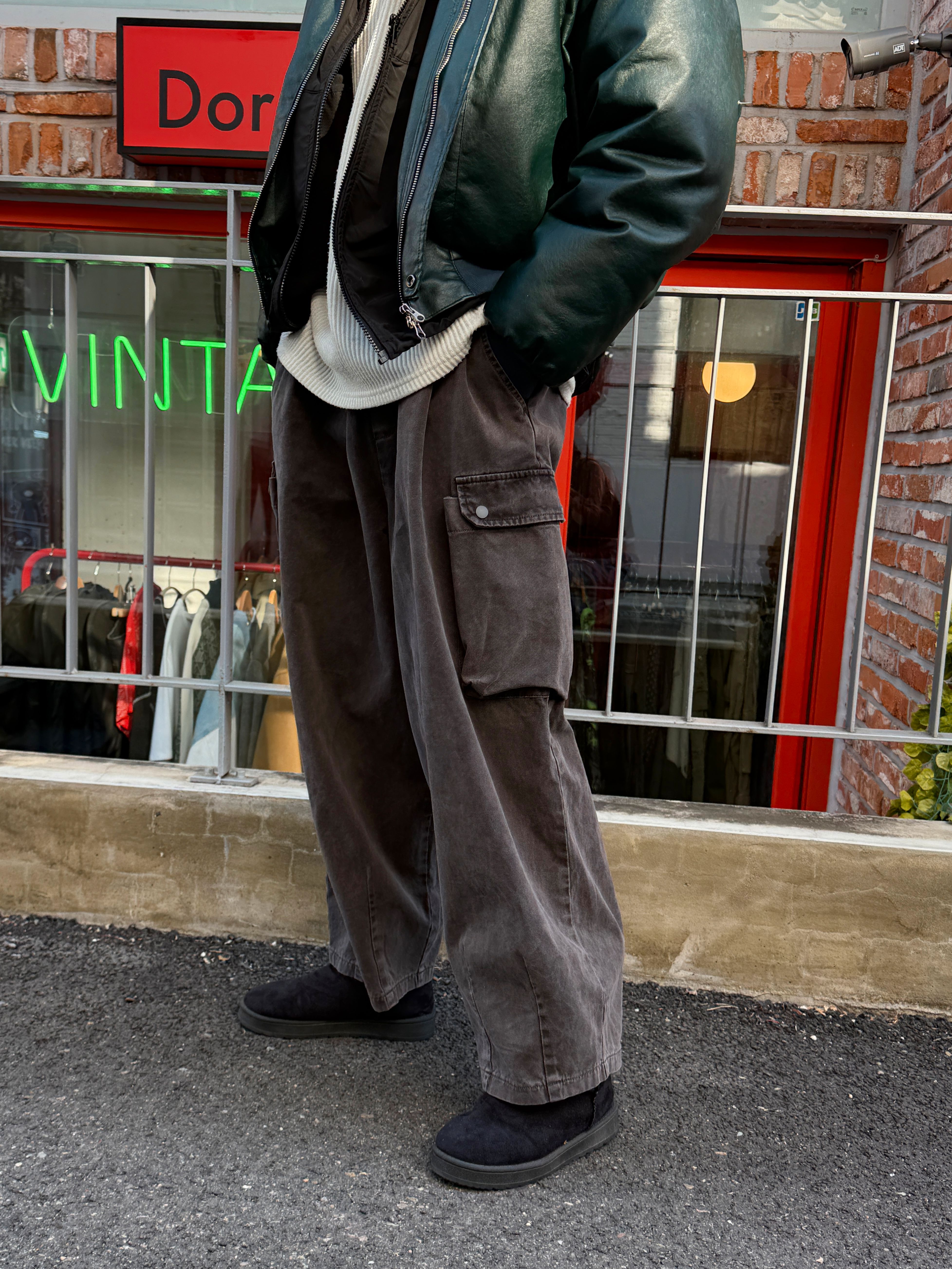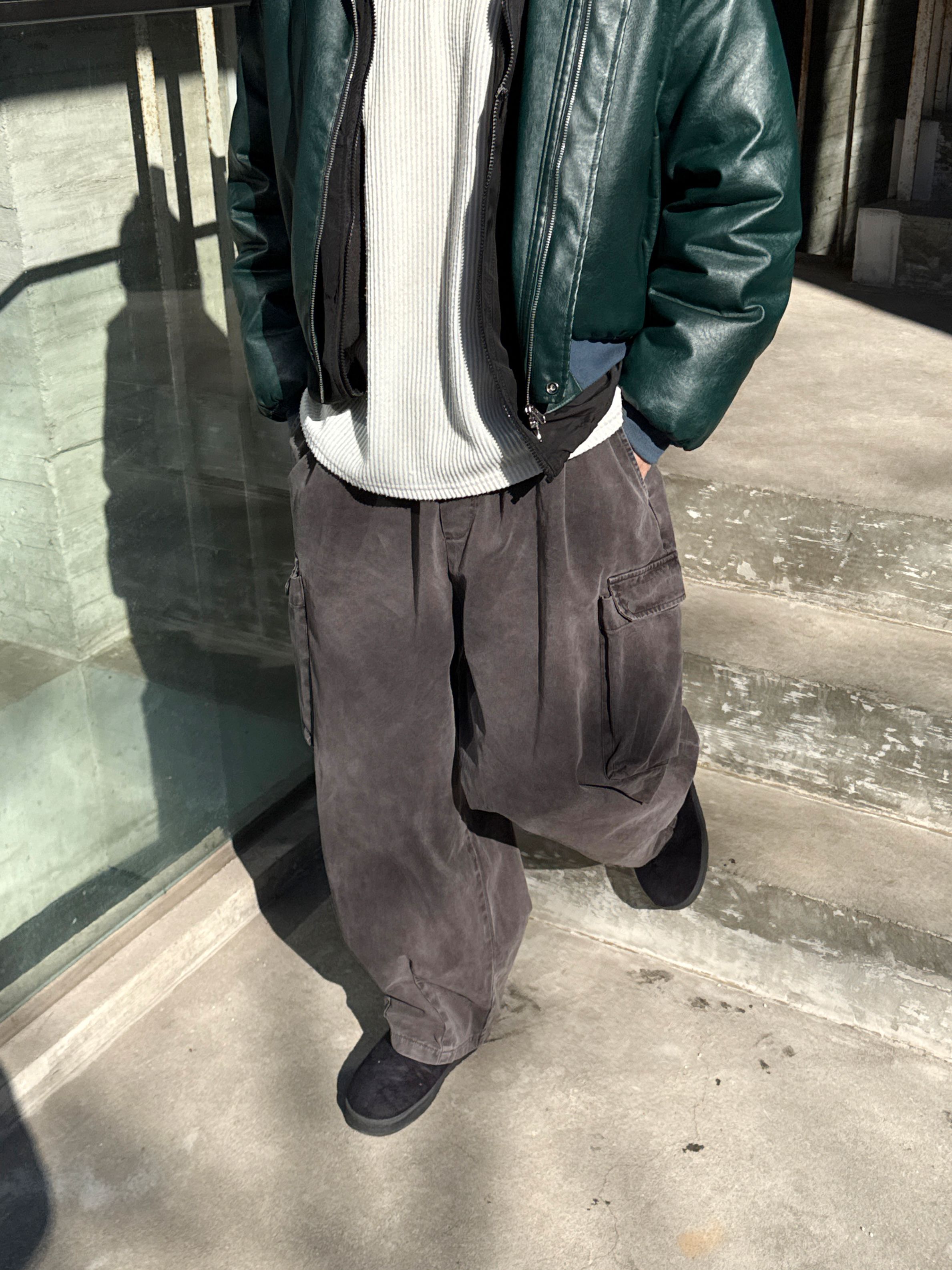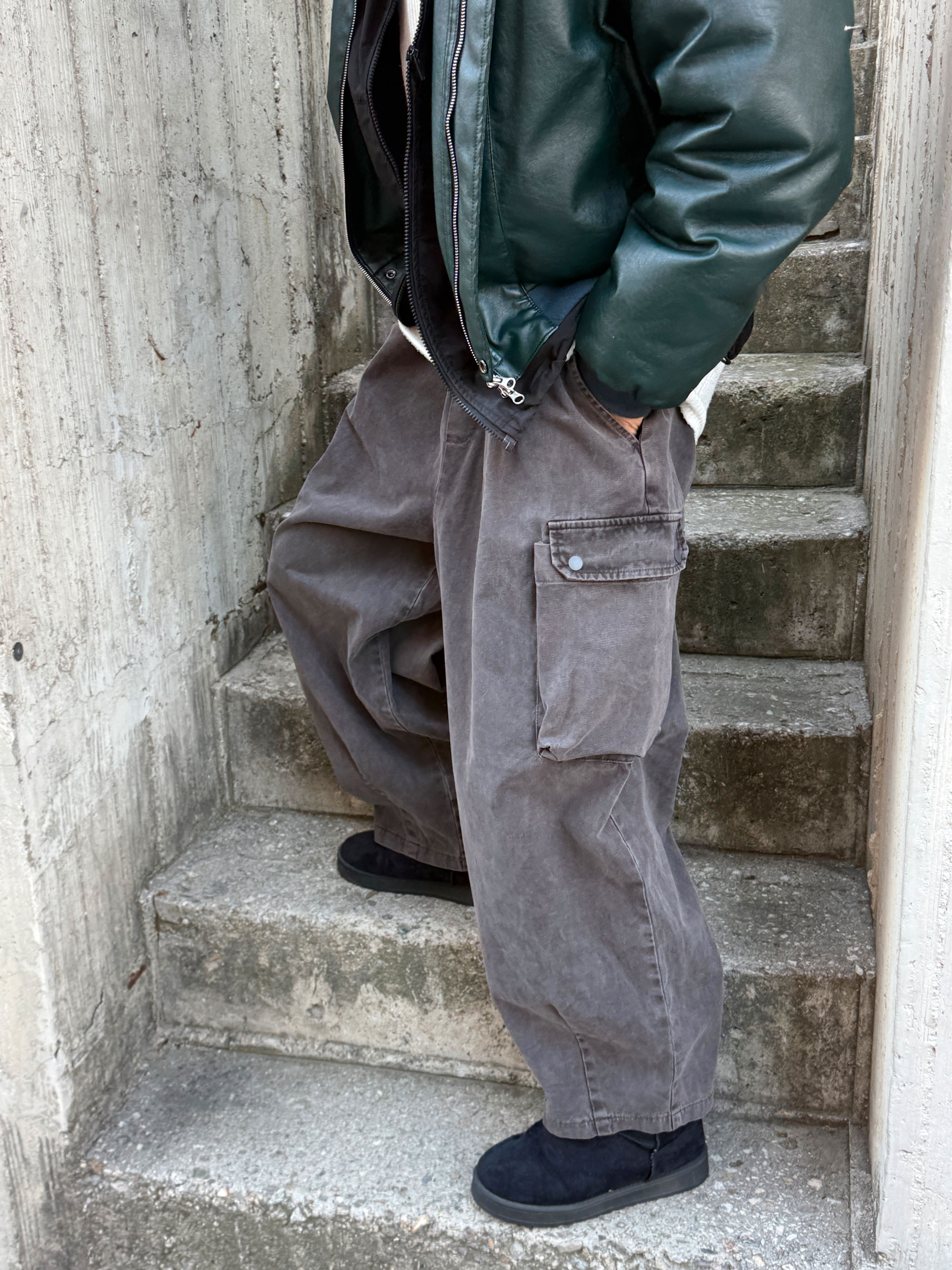 R795 氣球染色工裝鬆緊腰闊腿褲 FW